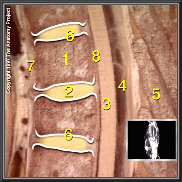 Hyaline cartilage over articular surfaces of vertebral bodies