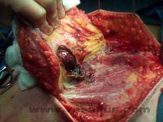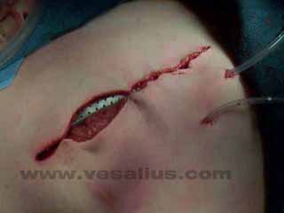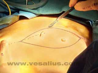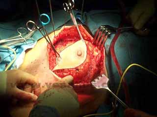 The flaps are developed up to the clavicle and down to the rectus abdominus.