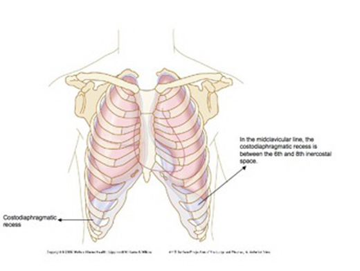 - Thoracocentesis: Under local anesthetic, a large hollow bore needle (cannula) is inserted into the costodiaphragmatic recess of an upright patient. The costodiaphragmatic recess is the lowest extent of the pleural sac, and so it is where any pleural effusion will collect in an upright patient.