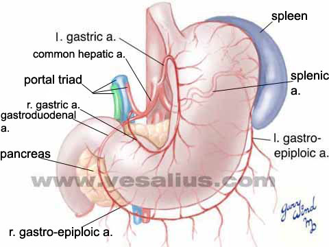 - Variations in the arteries of the celiac trunk are quite common, and thus are of particular interest to surgeons working in this area. Suppose the common hepatic artery originated from the left gastric artery in this case (an uncommon, but possible, variation) and the surgeon had to ligate the left gastric artery proximal to the bifurcation. How would this affect blood flow to the stomach? to other organs?
