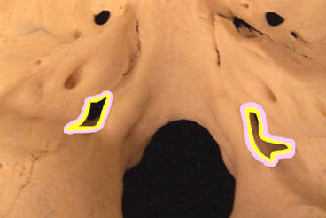 The vagus nerve means the wanderer due to its extensive innervation throughout the body. It is responsible for sensation from the inferior pharynx, larynx and thoracic & abdominal viscera. Taste from the root of the tongue and the taste buds located on the epiglottis is also carried by CN X. The vagus nerve innervates the muscles of the soft palate, pharynx, the intrinsic laryngeal muscles and the palatoglossus muscle of the tongue. Parasympathetic innervation of the thoracic and abdominal viscera down to the splenic flexure is also a function of CN X. The vagus nerve will exit the skull with the glossopharyngeal nerve (CN IX) at the JUGULAR FORAMEN.