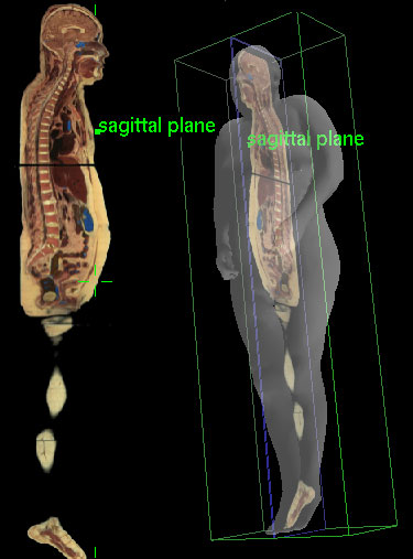 The sagittal plane is named for the sagittal suture, which is a mid-line suture joint of the skull. It is also known as the median or mid-sagittal plane, and it divides the body into right and left halves. Planes passing parallel but not in the mid-line are called para-sagittal planes.