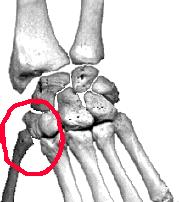 Synovial Joints-Saddle JointsSaddle (a.k.a. sellar) joints are also biaxial joints, but here, the articulating surfaces are concavoconvex (one bone shaped like a saddle and the other shaped like a horse's back). These joints allow flexion, extension, abduction, adduction and circumduction. An example of a saddle joint is the carpometacarpal joint of the thumb. |