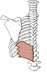 thoracolumbar fascia, spines of vertebrae T11-T12 and L1-L2 | ribs 9-12, lateral to the angles | pulls down lower ribs | branches of the ventral primary rami of spinal nerves T9-T12 | lowest posterior intercostal a., subcostal a., first two lumbar aa. | a respiratory muscle, it receives ventral ramus innervation; embryonically related to the intercostal muscles, not the deep back mm. (Latin, serratus = to saw) | |