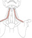 digastric (TG7-33) anterior belly: digastric fossa of mandible; posterior belly: mastoid notch of temporal bonebody of hyoid via fibrous loop over intermediate tendonelevates hyoid; depresses mandibleanterior belly: mylohyoid nerve, from mandibular division of trigeminal nerve (V); posterior belly: facial nerve (VII)forms two sides of the submandibular triangle