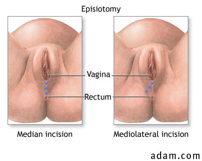 An episiotomy is an incision made in the perineum to enlarge the distal end of the birth canal. Episiotomies are performed in order to ease delivery, especially in difficult cases like breech and forceps deliveries.
