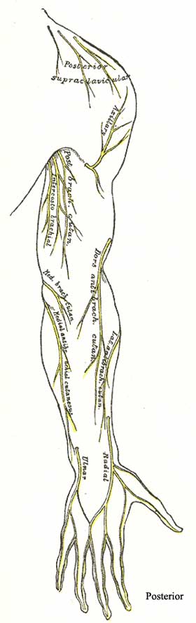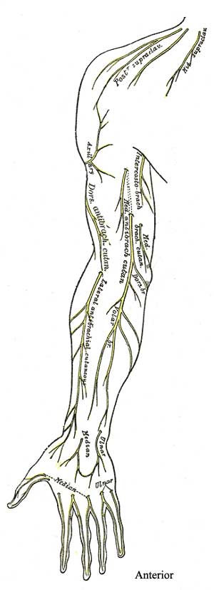Cultural enrichment: Check out these sections from the 1918 version of Gray's Anatomy of the Human Body! Some of the terms are (of course) out-of-date, but the illustrations are timeless. The Sternum - The Muscles Connecting the Upper Extremity to the Anterior and Lateral Thoracic Walls - The Mammae (Breasts) - The Lymphatics of the Upper Extremity - The Anterior Divisions (nerves) - The Veins of the Upper Extremity and Thorax - The Axillary Artery - The Brachial Artery - The Muscles and Fascia¾ of the Shoulder - The Muscles and Fascia of the Arm - Surface Anatomy of the Upper Extremity - Surface Markings of the Upper Extremity