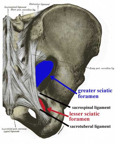 These ligaments, along with the greater sciatic notch and the lesser sciatic notch, make up the greater sciatic foramen and the lesser sciatic foramen, respectively.