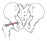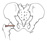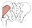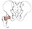 fan-shaped bone that forms the lateral prominence of the pelvis | one of three bones that form the os coxae: ilium, ischium, pubis | |