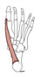 cuboid, lateral cuneiform, medial side of first metatarsal | medial belly: medial side of proximal phalanx of hallux; lateral belly: lateral side of proximal phalanx | flexes metatarsophalangeal joint of hallux | medial plantar nerve (lateral belly occasionally receives innervation from lateral plantar nerve) | medial and lateral plantar aa. | each tendon of insertion contains a sesamoid bone (Latin, hallex = great toe) | |
