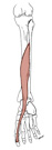 middle half of anterior surface of fibula & interosseous membrane | base of distal phalanx of hallux | extends metatarsophalangeal & interphalangeal joints of hallux | deep fibular (peroneal) nerve | anterior tibial a. | (Latin, hallex = great toe) | |