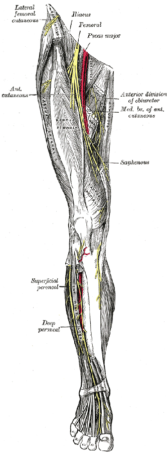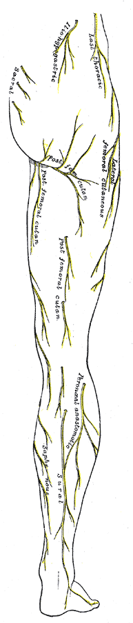 Cultural enrichment: Check out these sections from the 1918 version of Gray's Anatomy of the Human Body! Some of the terms are (of course) out-of-date, but the illustrations are timeless. The Femur - The Muscles and Fascia of the Thigh - The Veins of the Lower Extremity, Abdomen, and Pelvis - The Arteries of the Lower Extremity - Surface Anatomy of the Lower Extremity - Surface Markings of the Lower Extremity