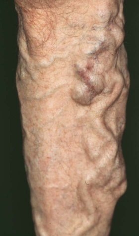 Superficial veins, e.g. greater and lesser saphenous veins and tributaries.